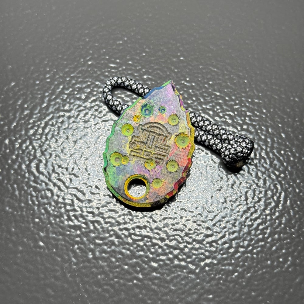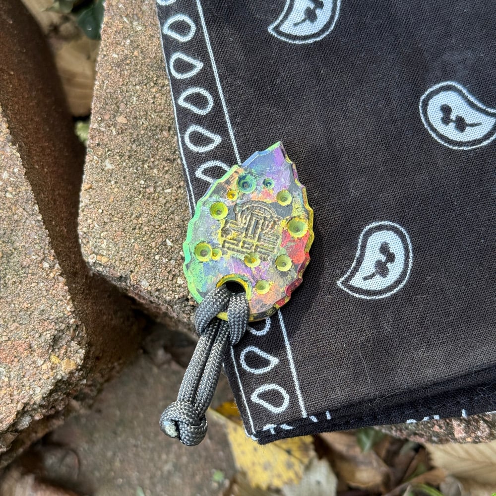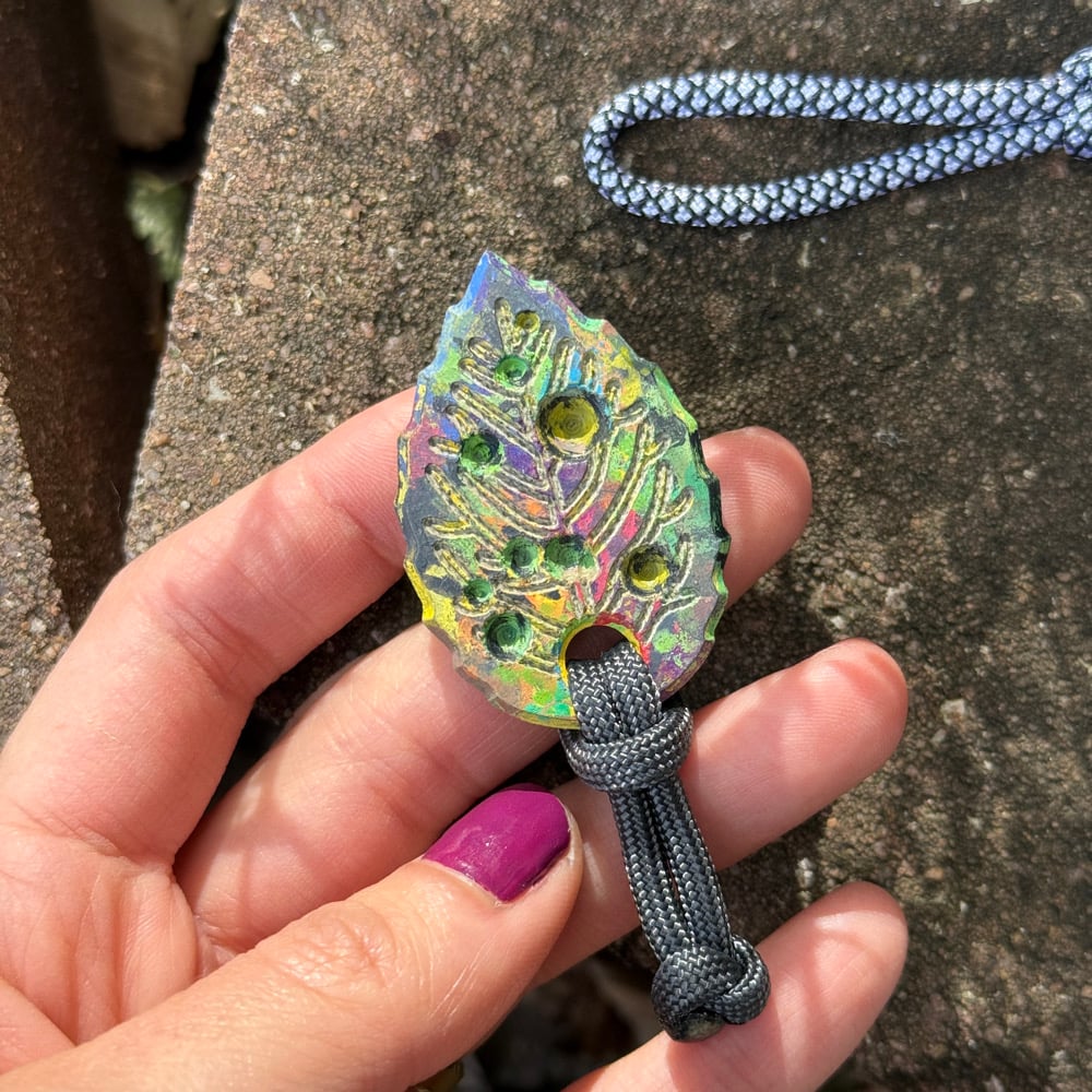 Hand painted on a micarta leaf