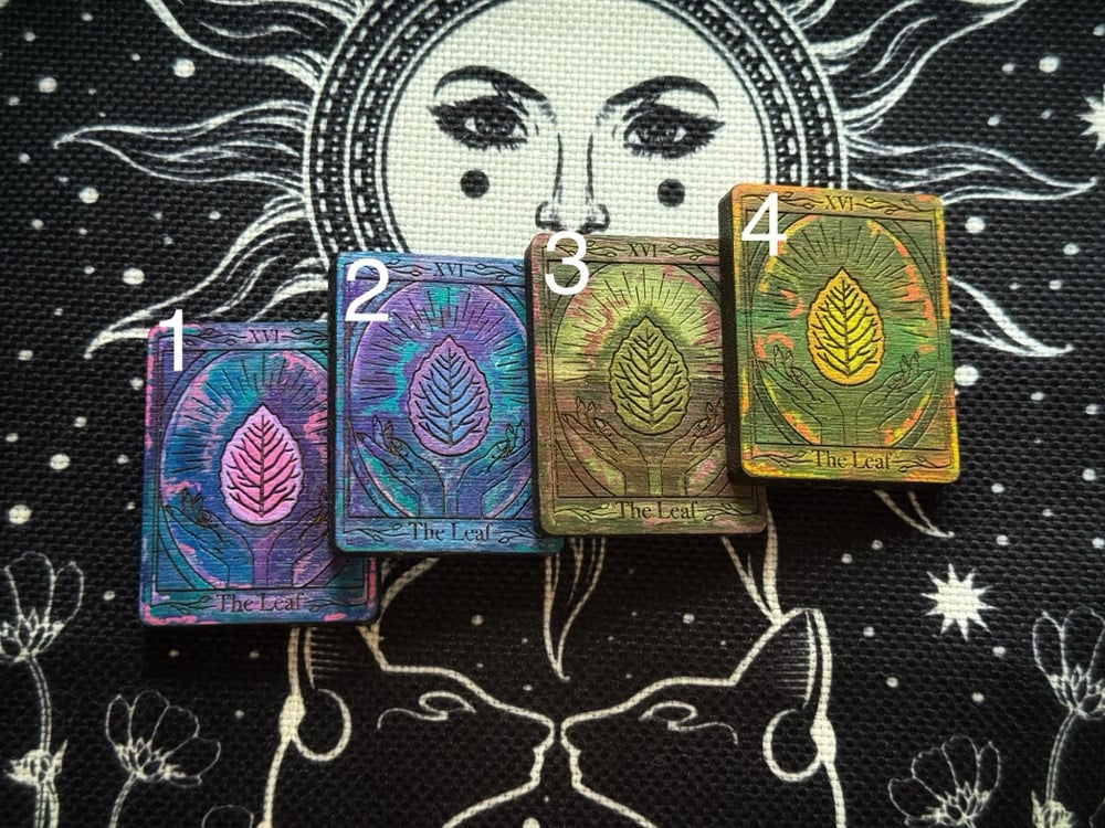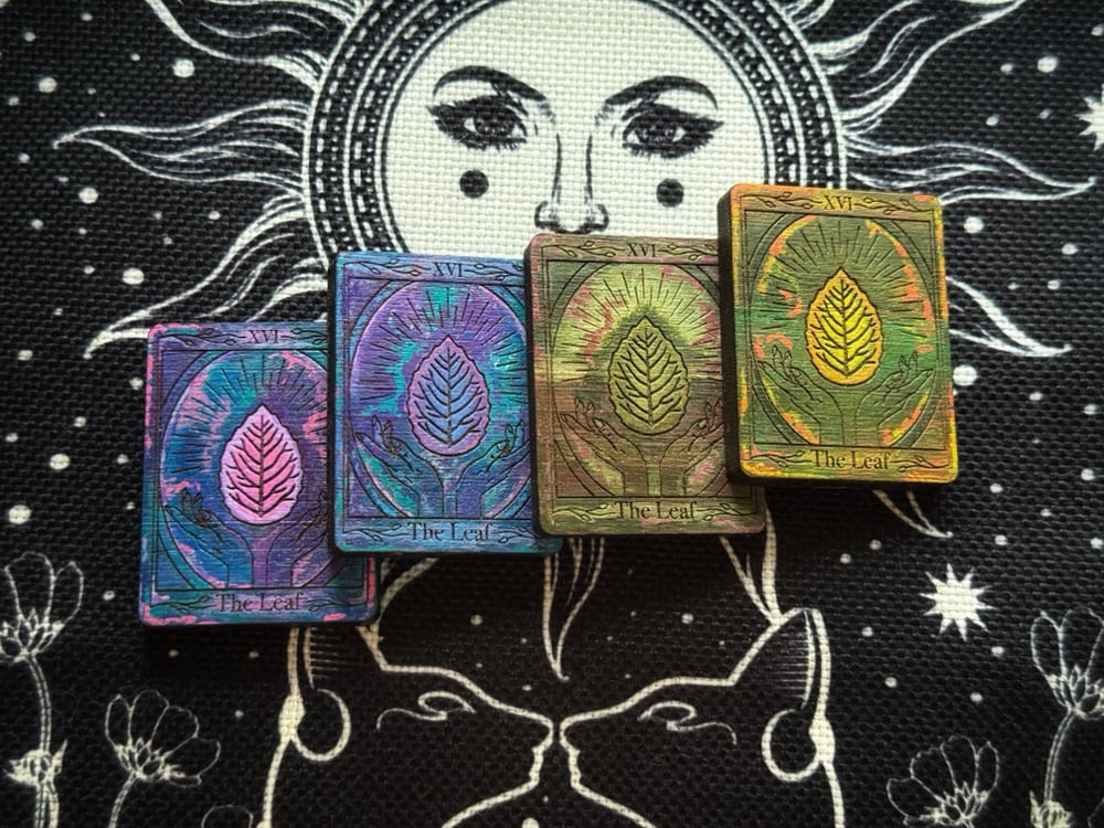 Cut from real wood, engraved and hand painted tarot cards. Each one has been created with the utmost passion and care, as all of our products are before being sent to their new home with you.